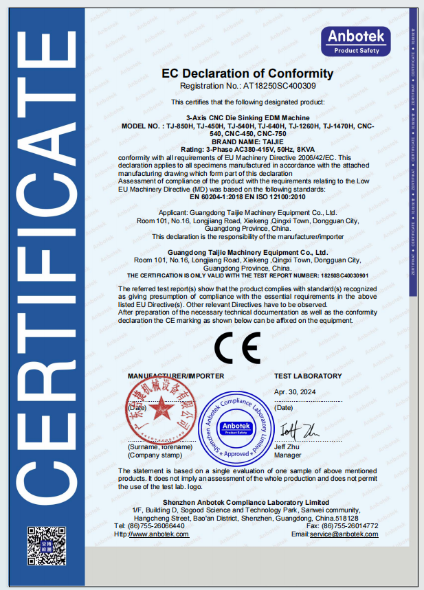 Guangdong Taijie Machinery Equipment Co., Ltd. is a professional committed to high-quality mold processing equipment and parts processing equipment technology research and development, manufacturing, sales and all-round service in one of the merchants. Since the establishment of rapid development, has become a strong domestic CNC machine tool manufacturing enterprises. Since the establishment of the production base in mainland China in 2002, the company has fully absorbed the advantages of machine tools from famous manufacturers at home and abroad and has produced thousands of different types of machining center and CNC machine tools, accumulating rich manufacturing and service experience. At present, the existing products include high-speed high-precision machining center, drilling tapping machine, gantry machining center machine, high-speed engraving and milling machine series products; Mirror finish EDM machine series,ZNC EDM machines series. Variety complete, cost-effective, integrity management, common development has become our product management characteristics.